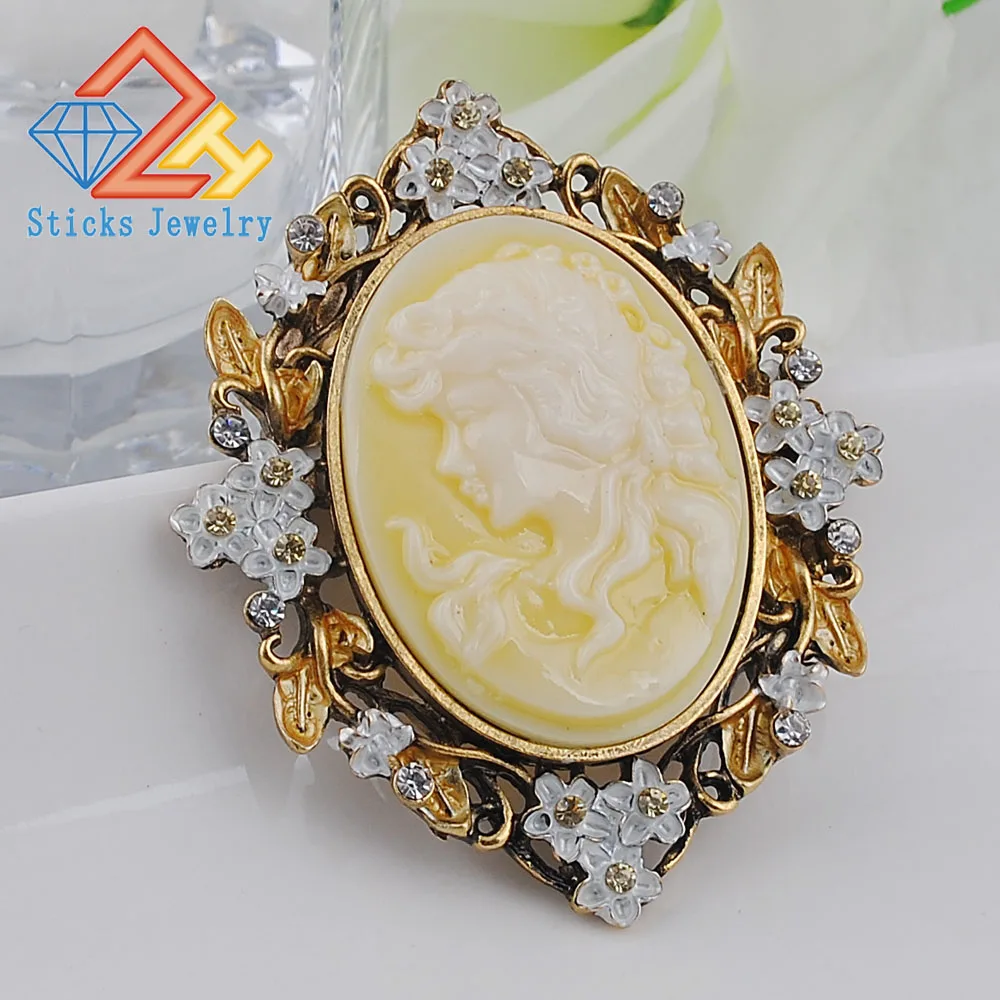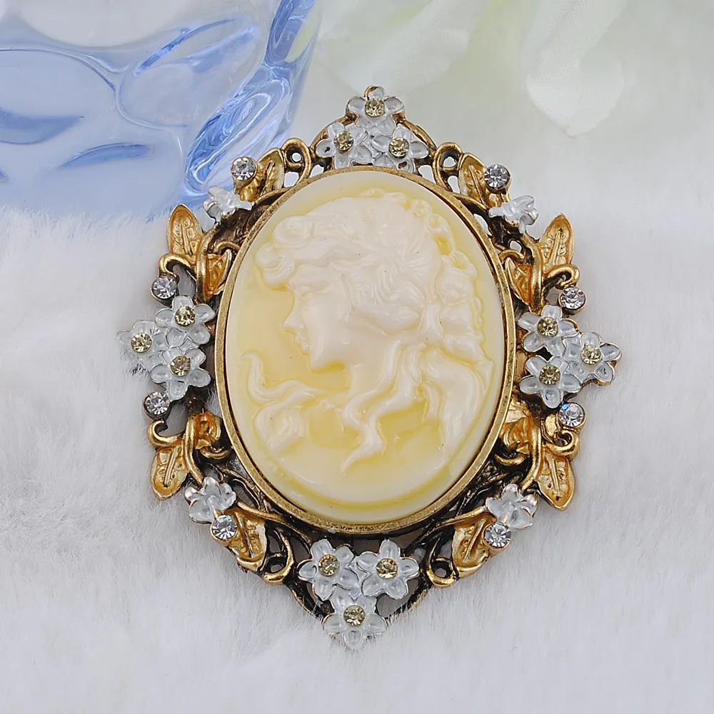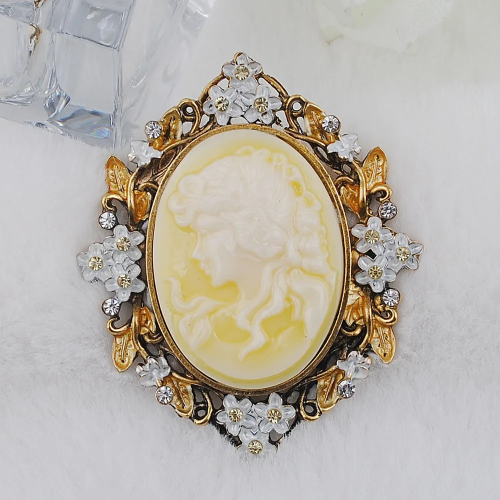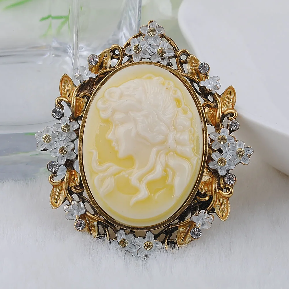 Beauty Head Brooches Classic Retro Style Yellow Head Beauty Accessories