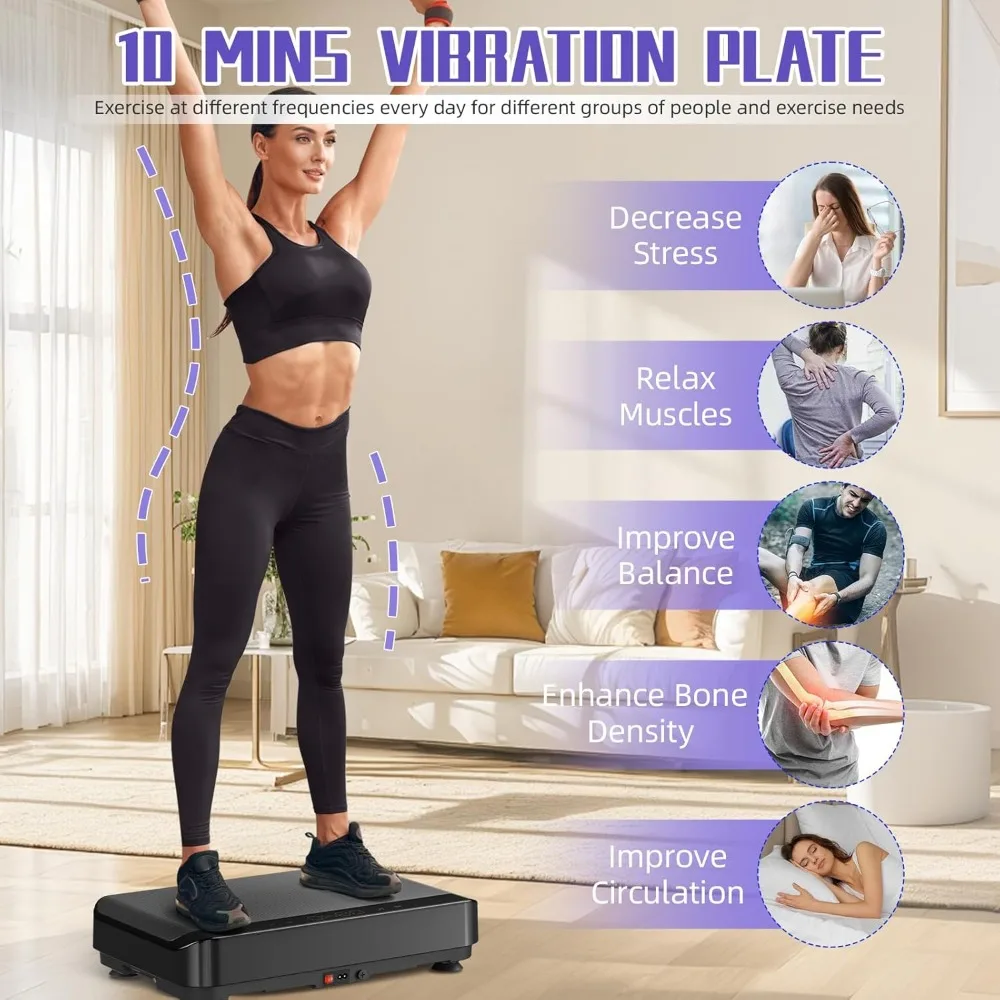 - WHOLE BODY EXERCISE: The whole-body vibration board achieves weight loss by burning calories through vibration. Suitable for the needs of different groups of people, including weight loss and shaping for women, muscle and strength building for men, and improving physical flexibility for the elderly. It can help you achieve your exercise goals.